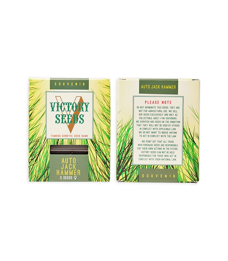 Почки автоцветущего феминизированного Auto Jack Hammer (в переводе с английского «отбойный молоток») крайне похожи на оригинального фотопериодного Джека, но благодаря мощной корневой системе, сорт подходит для выращивания в различных климатических условиях. Обильный урожай обладает кисленьким запахом Хейза и приятным уровнем ТГК (16%), несущим смешанный эффект.
