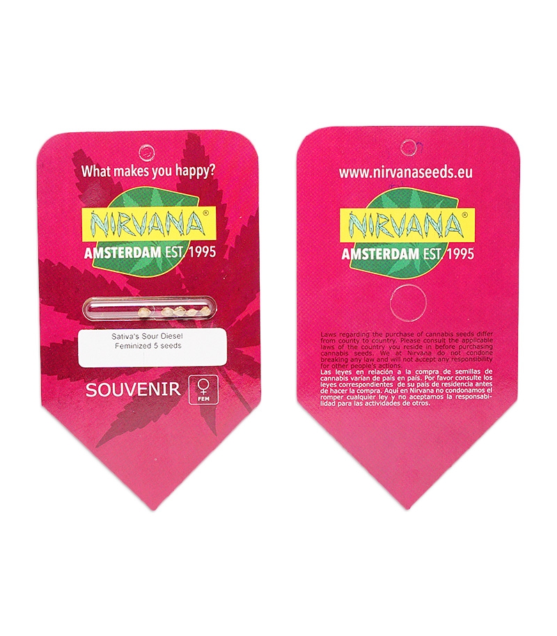 Nirvana представляет Sour Diesel (Sativa's Sour Diesel), новые феминизированные семена на 2016, от знаменитого голландского сидбанка Nirvana seeds. Преимущественно калифорнийская генетика. Выведен при скрещивании NY Power Diesel x Sour Diesel. Приспособлен для средиземноморского климата. С доминирующей сативой. Генетика получилась следующая: Сатива 70% Индика 30%.