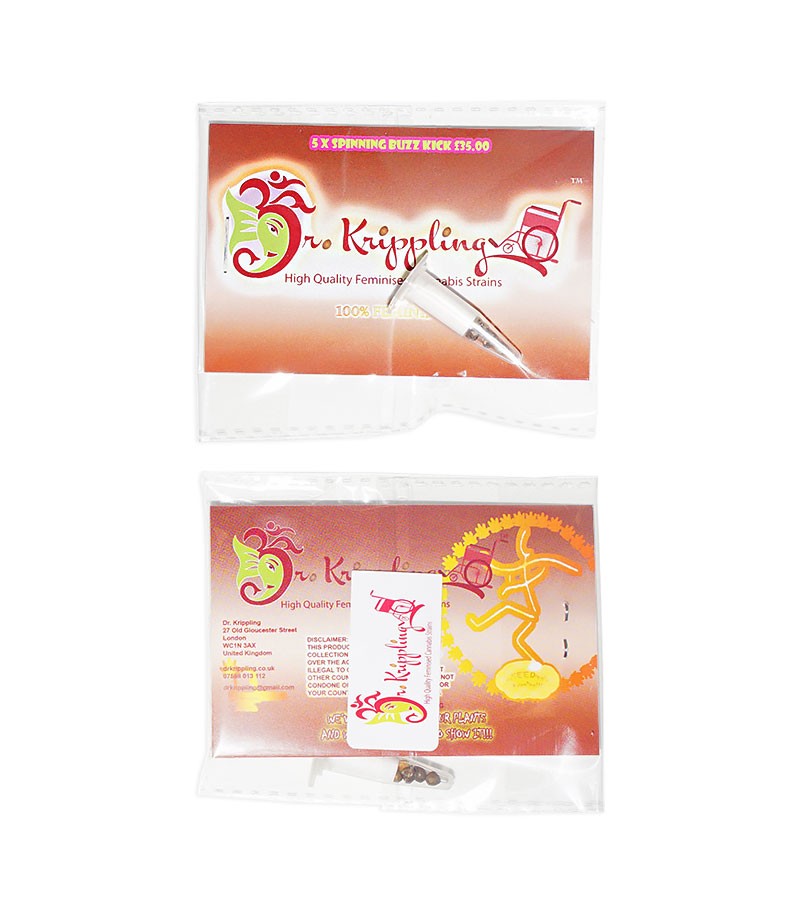 Автоцветущая новинка от британского сидбанка Dr.Krippling под названием Spinning Buzz Kick готова радовать всех и каждого. Отличный сорт конопли, который подойдёт для выращивания дома и на улице, с которым справятся опытные гроверы и новички. Содержание ТГК составляет 20%.