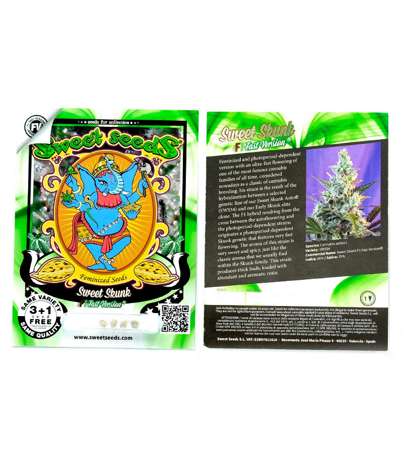 Семена марихуаны Sweet Skunk F1 Fast Version – уникальная культура, для получения которой были использованы классический Skunk и Early Skunk. Благодаря влиянию последнего период цветения удалось сократить с 9 до 6-7 недель. Эффект церебральный, позволяет максимально раскрыть творческий потенциал.