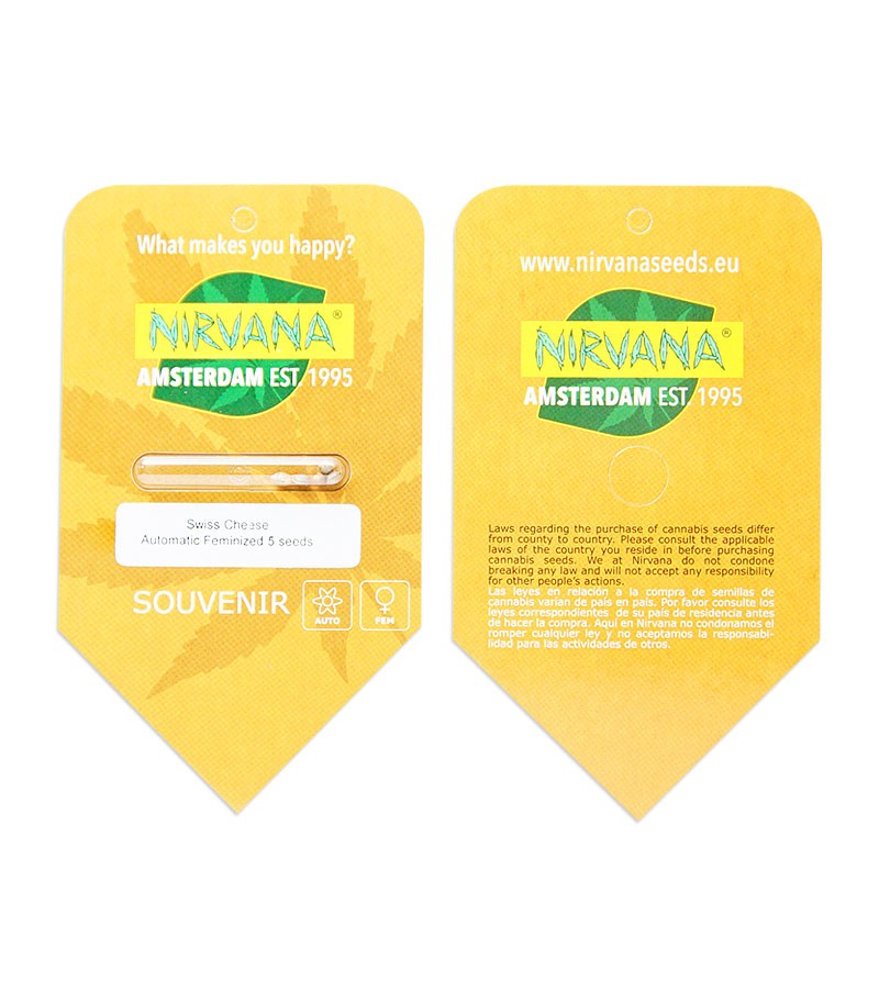 Семена конопли Swiss Cheese Auto fem от Nirvana. Низкое неприхотливое растение с сильным запахом швейцарского сыра. Отлично подходит для маленьких гроубоксов.