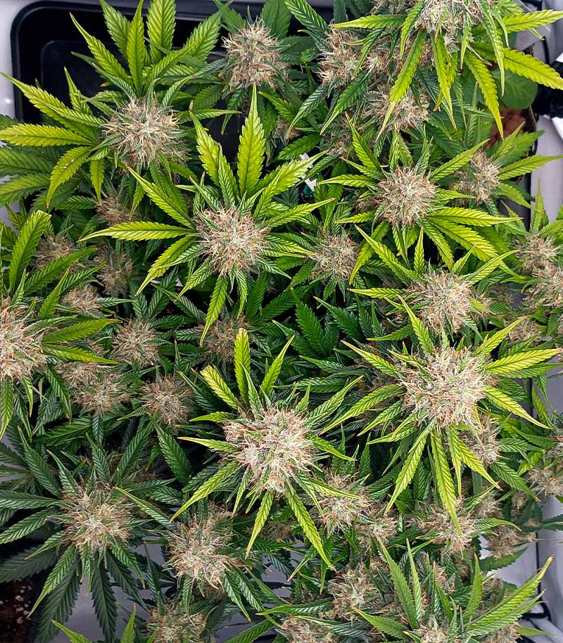 Жизненный цикл каннабиса Triple G Auto длится 10-12 недель. Чтобы развитие прошло без задержек и кустики не разочаровали, не рекомендуется резать, сильно гнуть и всячески подвергать растения стрессу. Период вегетации, когда формируются зеленая масса и общая структура куста, обычно проходит за 3-4 недели. Вся энергия растения в это время должна быть направлена на формирование ветвей и листвы, а не на восстановление от стресса. Опытные гроверы могут практиковать лёгкий LST-подгиб и ScrOG. Такие методики тренировок вряд ли серьезно навредят растихам.