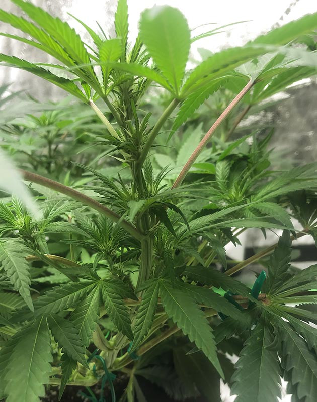 Растишка развивалась так стремительно, что я уже начал сомневаться, а не автоцвет ли это. Еще вчера был маленький росток, а сейчас уже большой и крепкий куст. Поэтому пора приступать к тренировкам. Начать я решил с техники LST. Через три дня, когда немного разогнул куст, перешел к мейн линингу. Девочка отлично перенесла все манипуляции, и к концу недели у меня имелся в наличии низкий и пышный кустик с крепким основным стеблем и множеством ответвлений. На четвертой неделе удалил лишние листья, надеюсь, что дефолиация даст толчок росту ветвей и новых побегов. Полив на неделю: порция компота с All-Purpose Fertilizer и два полива чистой водой по 2 литра.