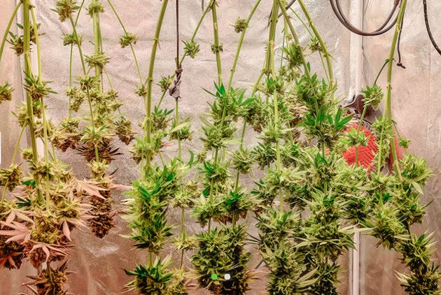 Срубили кустики, разделили их на ветки и повесили сушиться прямо здесь же в боксе. Сушка прошла без проблем, сложнее оказался маникюринг. Мы работали очень тщательно, убирая все, даже самые мелкие сахарные листочки. В результате потратили на все про все почти пять часов, сделав лишь пару перерывов на кофе и перекус.