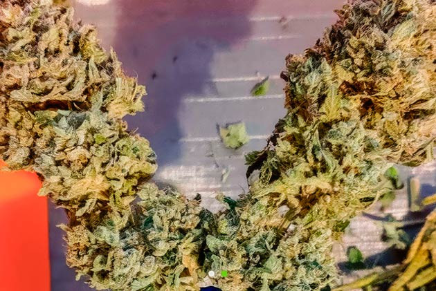 На самых верхних соцветиях, которые у нас созревают быстрее, уже видны янтарные трихомы, остальная масса – белые и прозрачные. Еще недельки две-три надо подождать до харвеста.